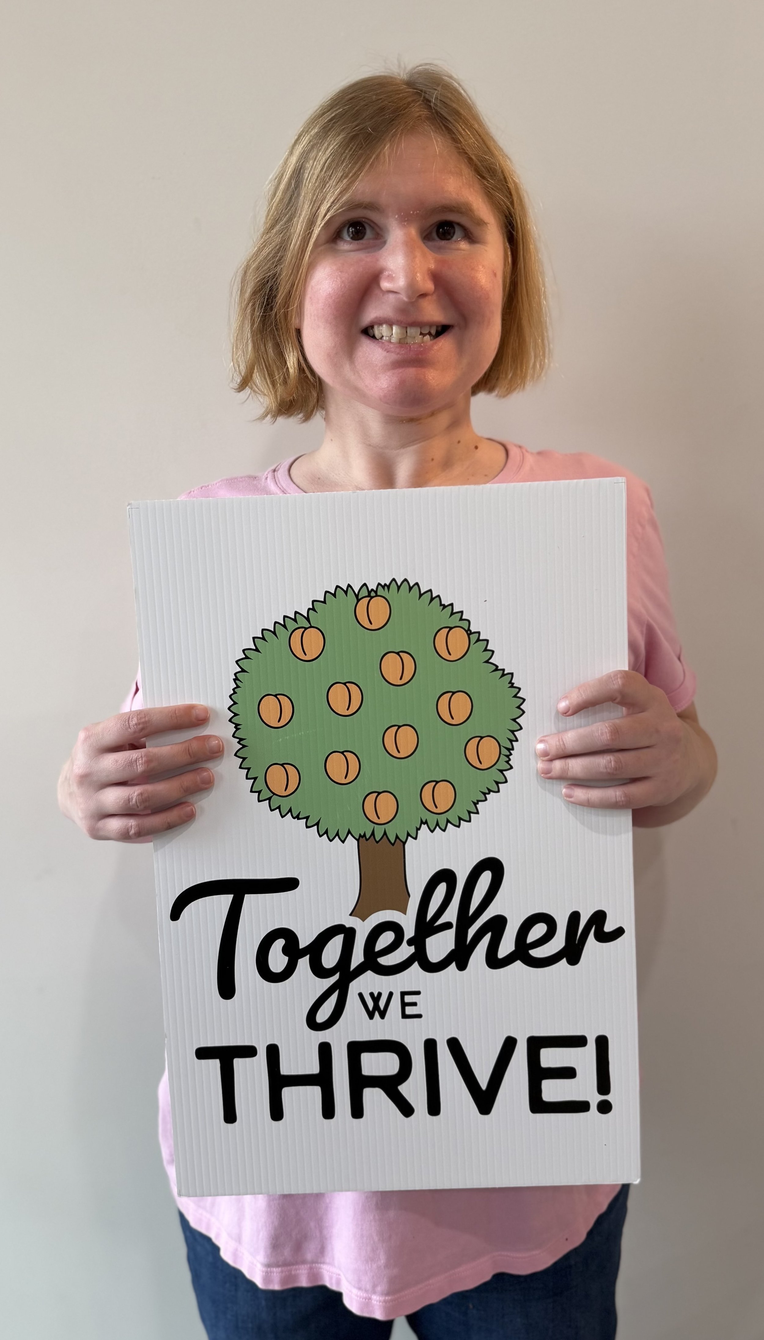 Hi, my name is Victoria and I am one of the citizens of Thrive Community. I love waking up every morning and having a purpose and a special place to go. I start every day (including the weekends) full of joy and a zest for life and asking to go to Thrive where I know that I am loved and accepted and part of the group! I enjoy the positive, Christ centered atmosphere at Thrive and I love all of my friends and our leaders. They are like my family! I have been called a “team supervisor” because I really enjoy watching everyone else work and occasionally offering some enthusiastic commentary. I like it when we listen to music while we work or take a walk when we have a break. I am proud to be a citizen of Thrive Community and I am grateful for your support!